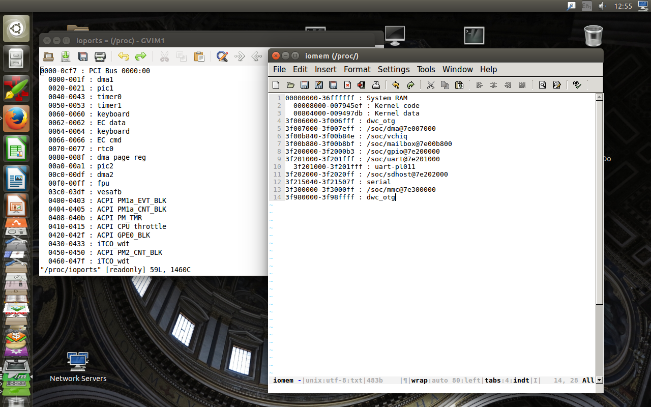 The Raspberry Pi using Rasbian Linux for example, does not have a /proc/ioports file available but does have the file /proc/iomem. Ubuntu Linux on a standard Intel PC has both /proc/ioports and /proc/iomem available to the system services.